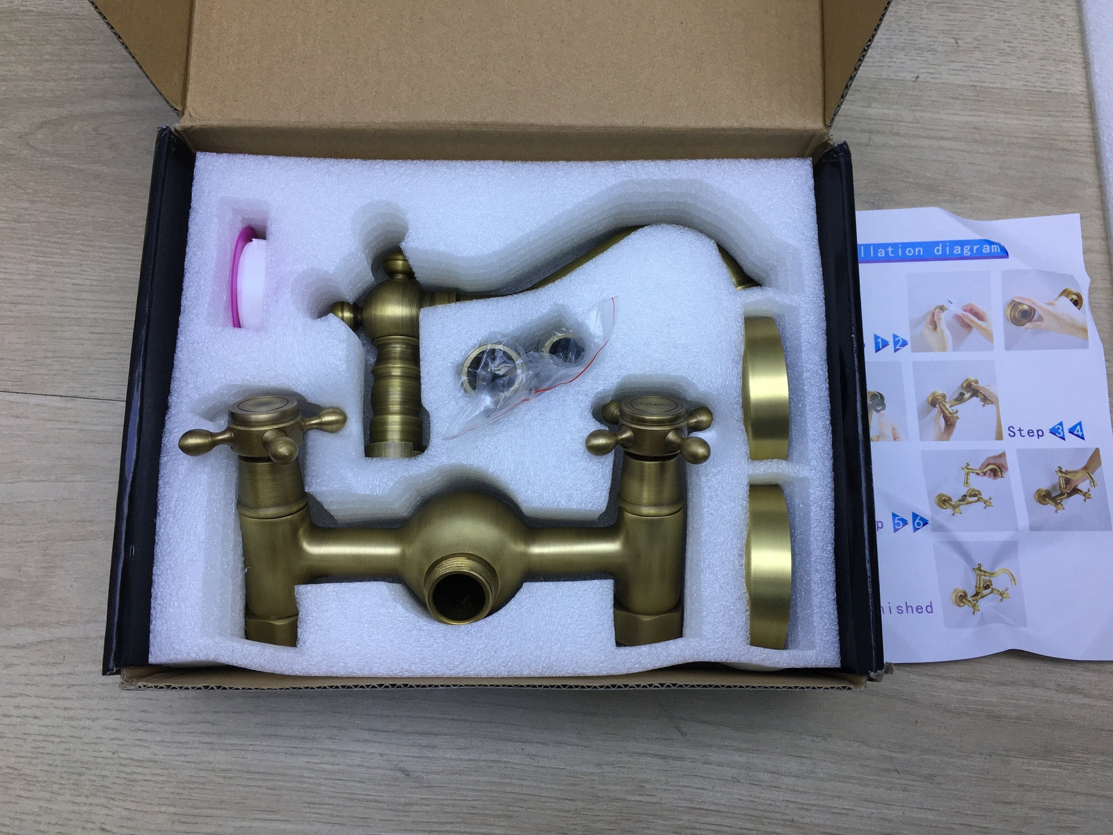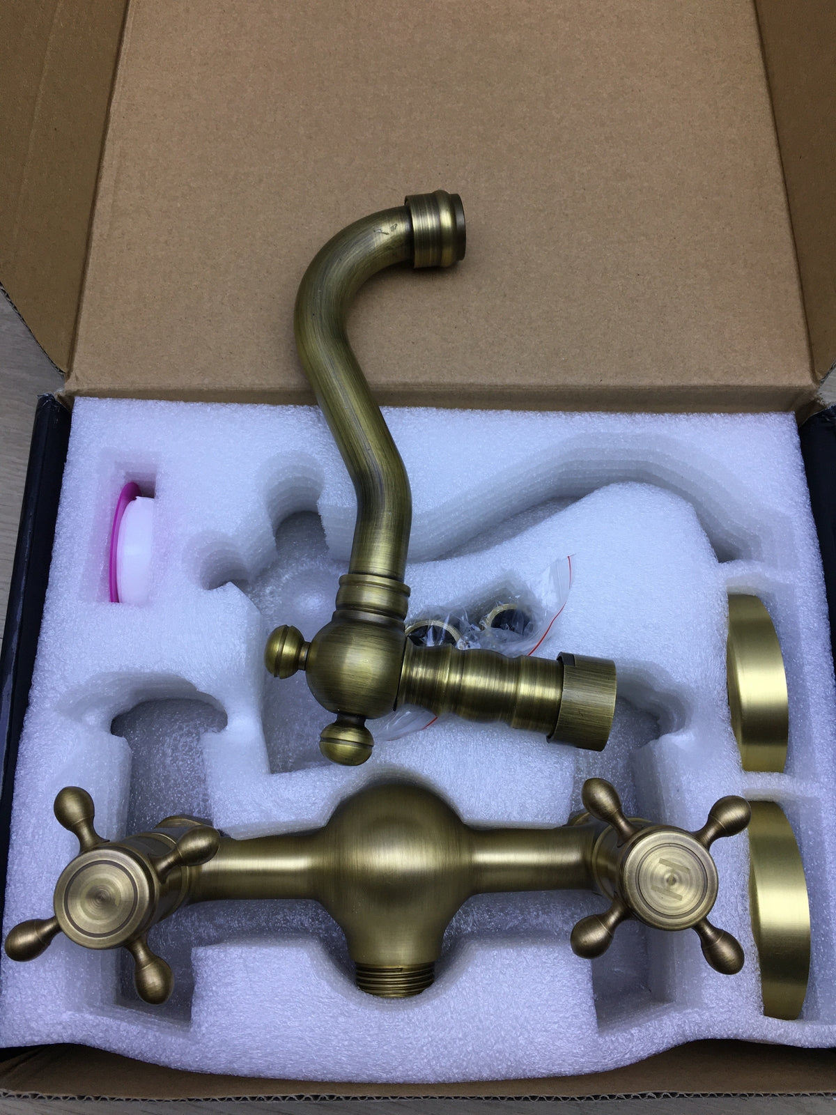 Antikes Kupfer-Wasserhahn für die Küche, klassisch, Doppelhebel, I19511