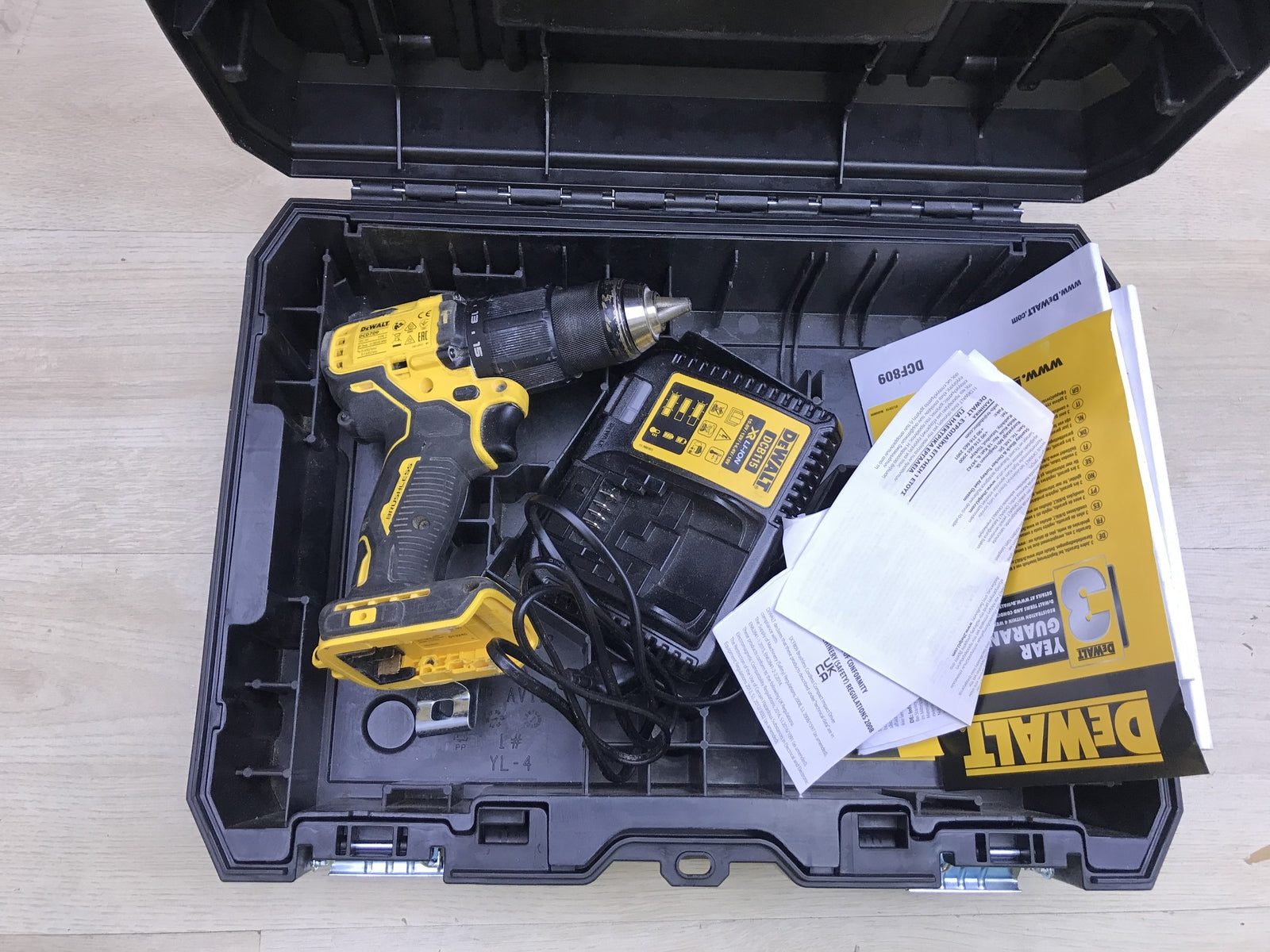 Dewalt Akku-Schlagbohrschrauber DCD709, ohne Akkus, Ladegerät, I26239