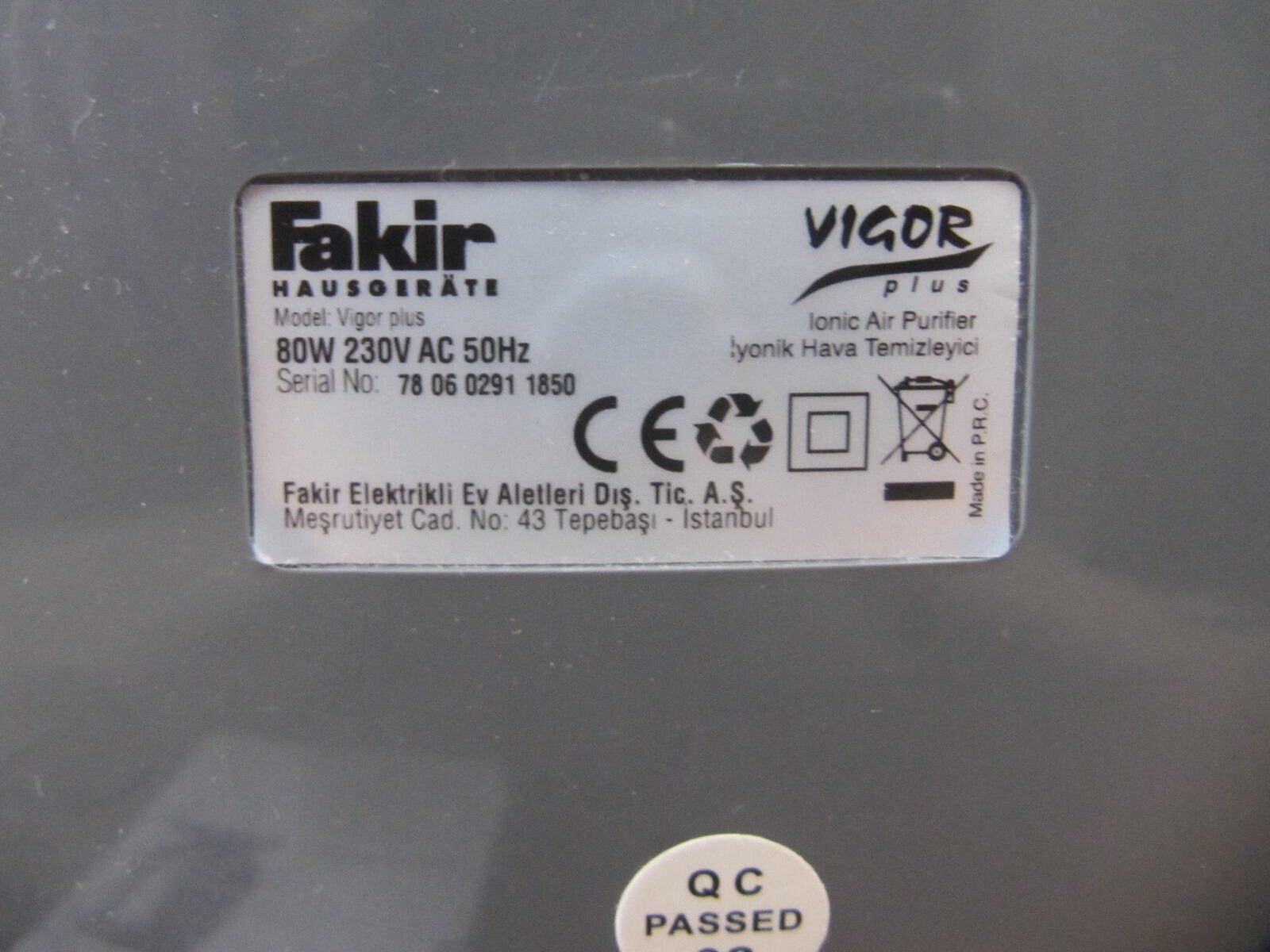 Fakir Vigor Plus Luftreiniger mit Ionisator DEFEKT! Y08497