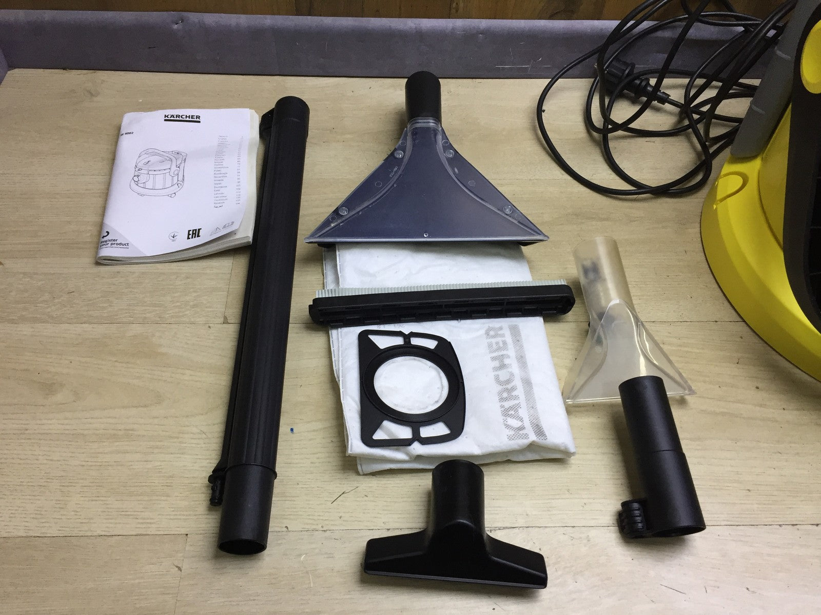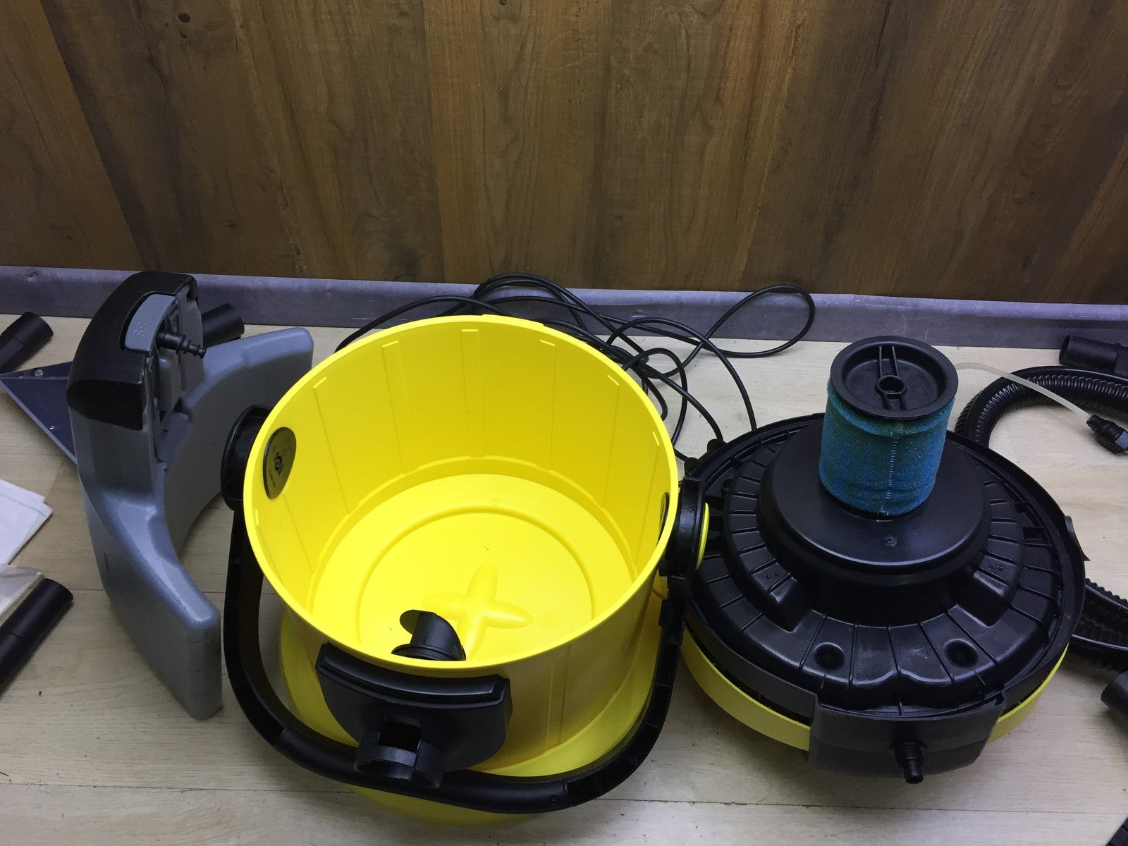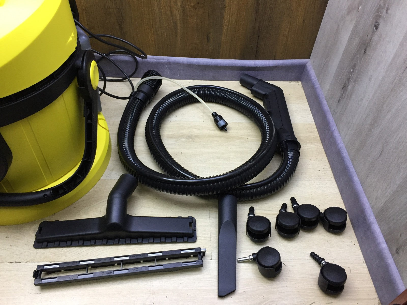 Zustandsbeschreibung: Es fehlen 1x Saugrohr und Reinigungsmittel (siehe Bild)!! Faltenfilter fehlt!! Ohne Waschdüsewassersprüher!! Gehäuse hat Riß (siehe Bild)!!