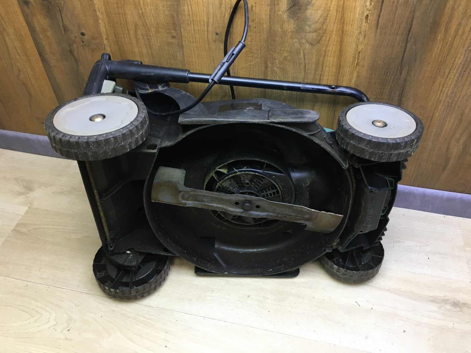 Zustandsbeschreibung: Defektware/Nur Ersatzteile!! Schnitthöheverstellung ist gebrochen (siehe Bild)!! Es fehlen Schubbügelverlängerung, Grasfangkorb-Griff und Bedienungsanleitung!! Ohne Schild mit Seriennummer!!