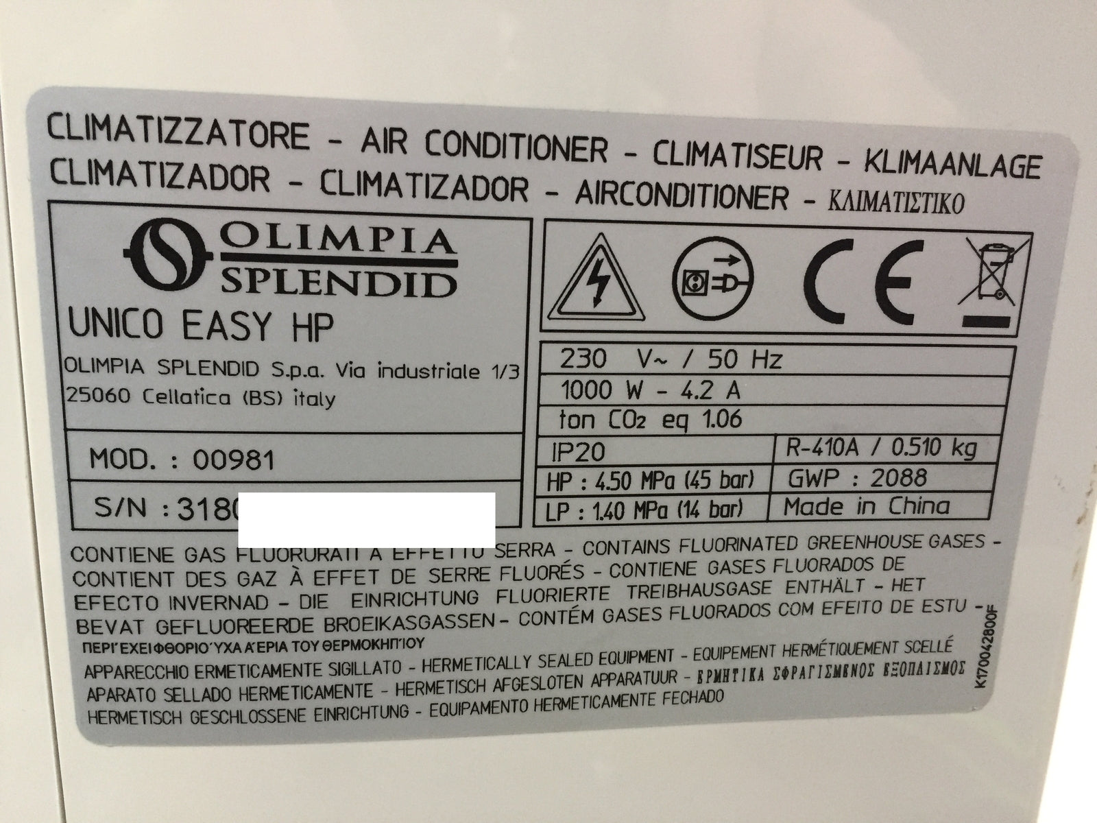 Olimpia Splendid 00981 Klimagerät, ortsfest, Unico Easy HP, I32854