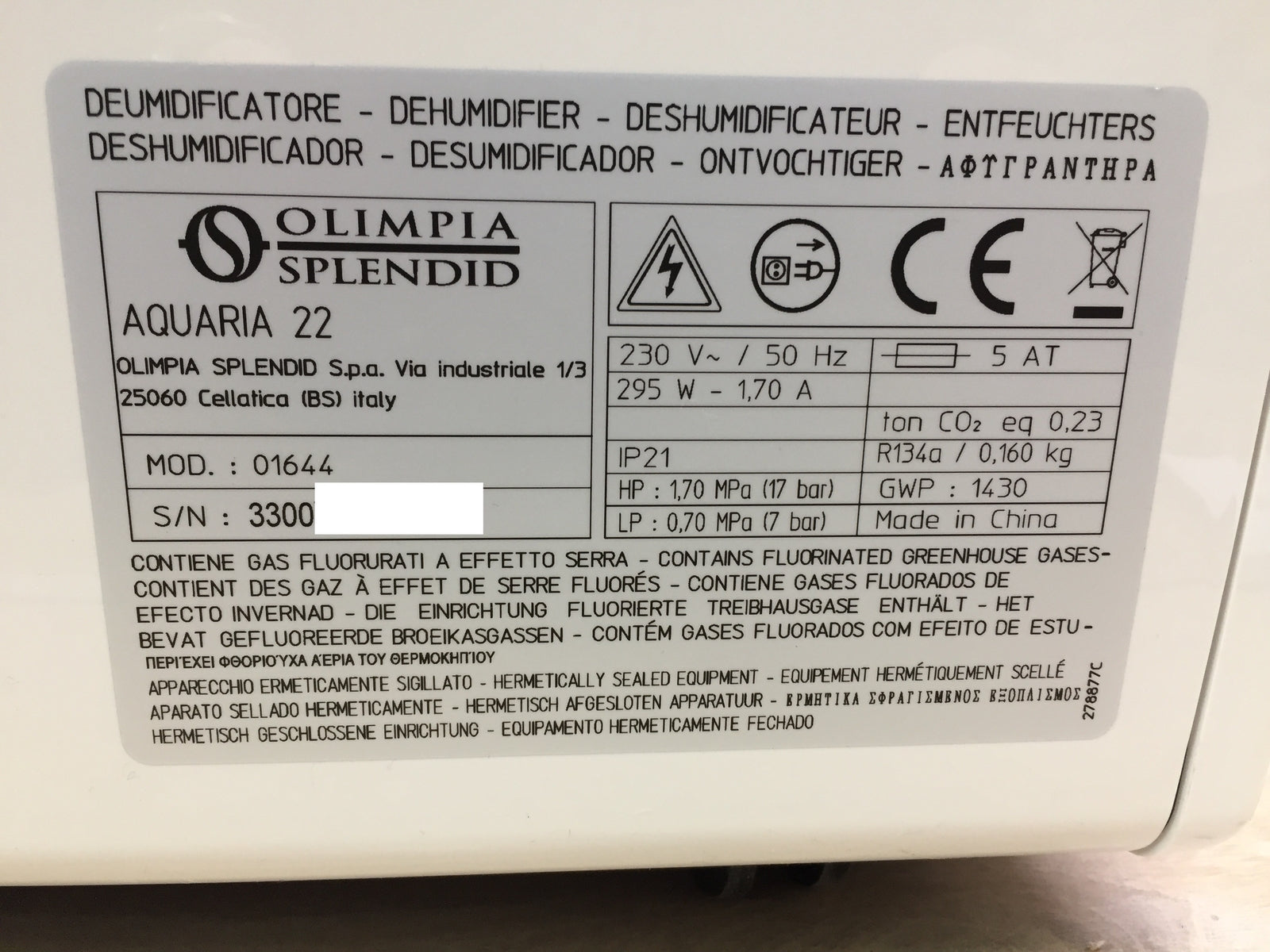 Olimpia Splendid 01644 Luftentfeuchter Aquaria 22, I32825