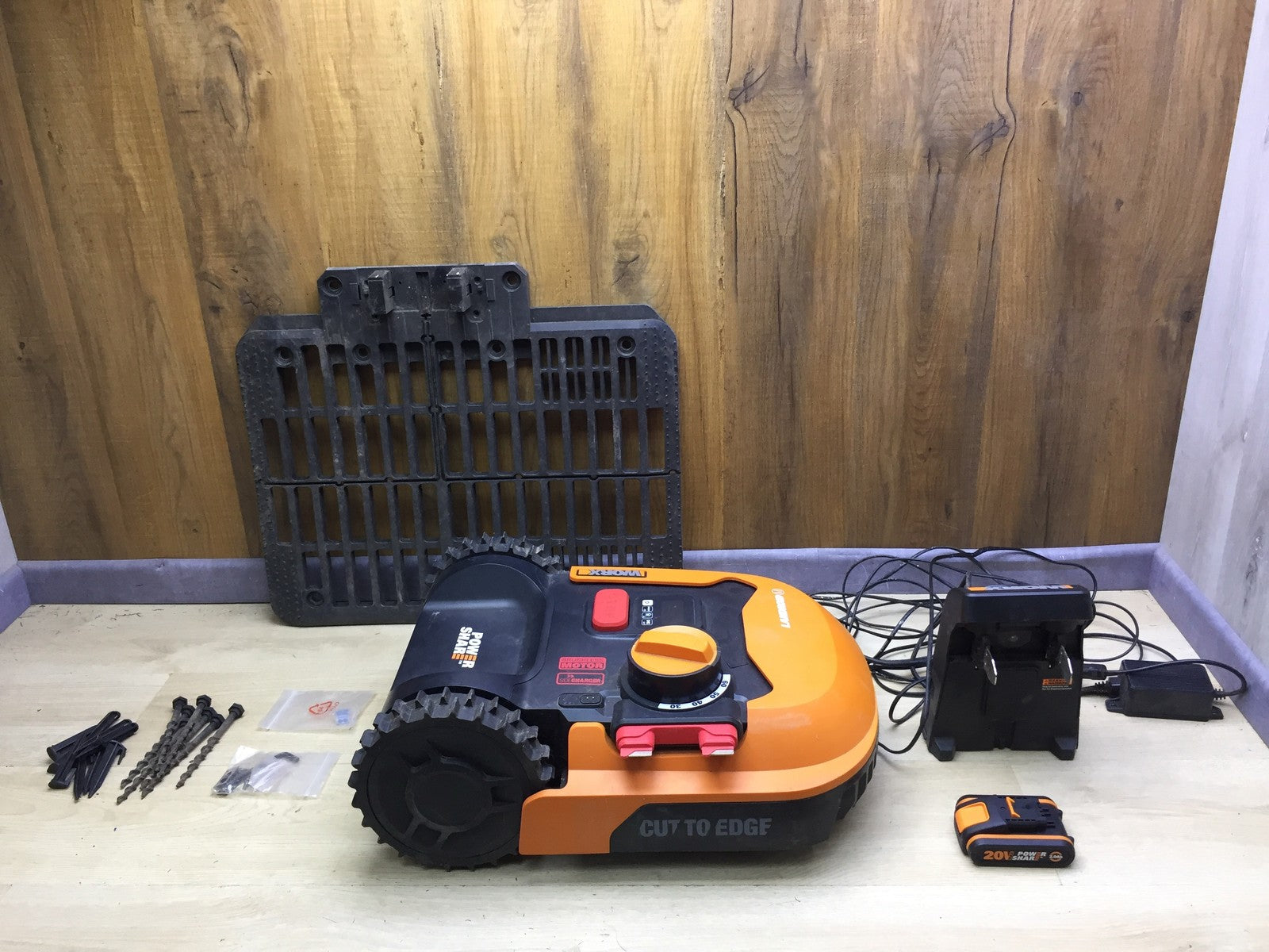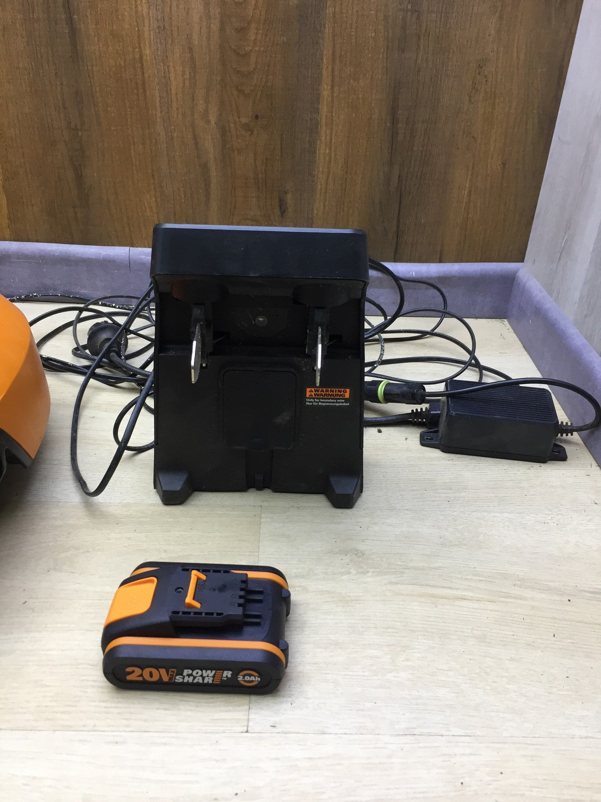 Zustandsbeschreibung: Es fehlen 1x Anschlussklemme und Begrenzungsdraht!! Gehäuse hat Kratzer (siehe Bild)!!
